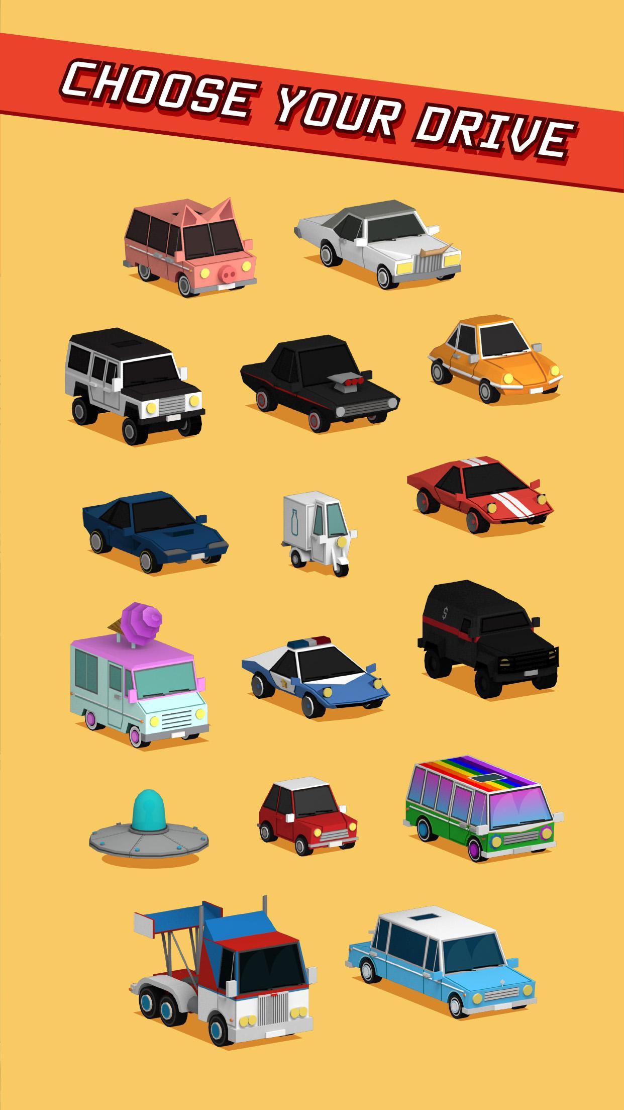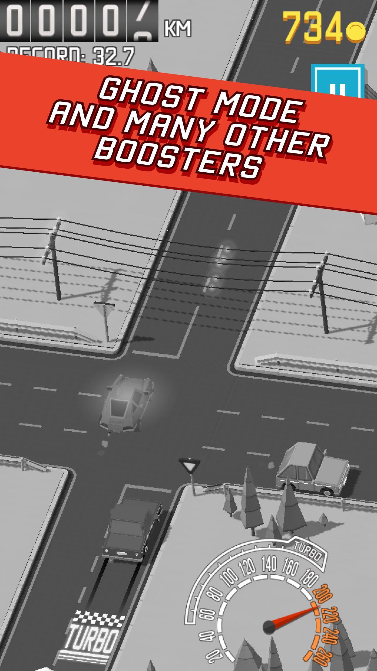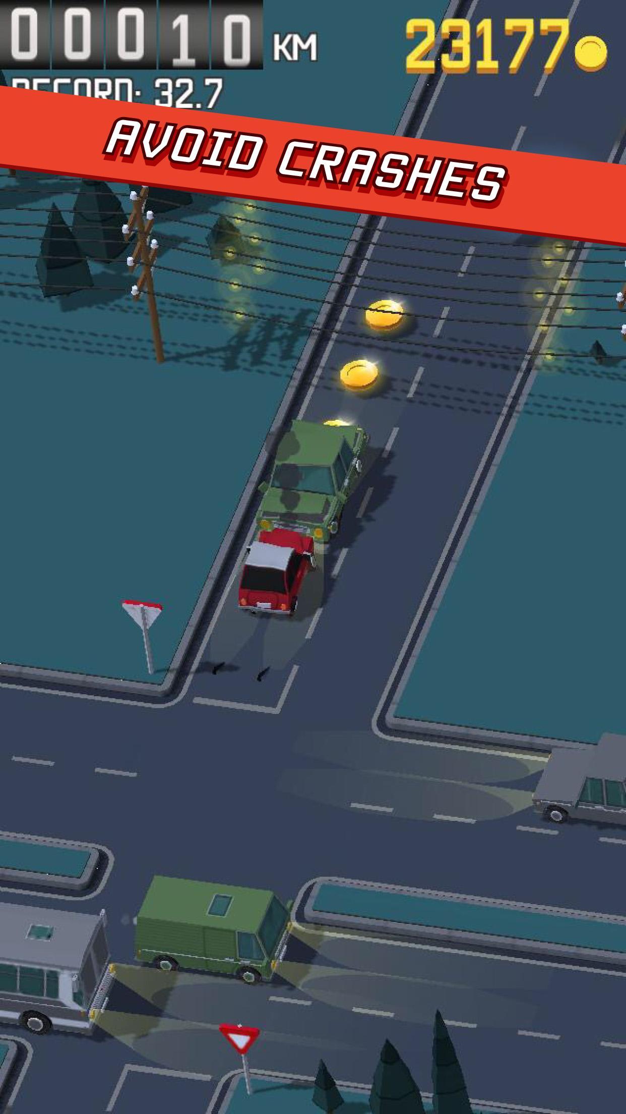 Collect coins, buy and drive new fast cars and hit the road. Easy to play but hard to reach high scores. Become a fearless rider on the endless road of joy, drive and challenges.