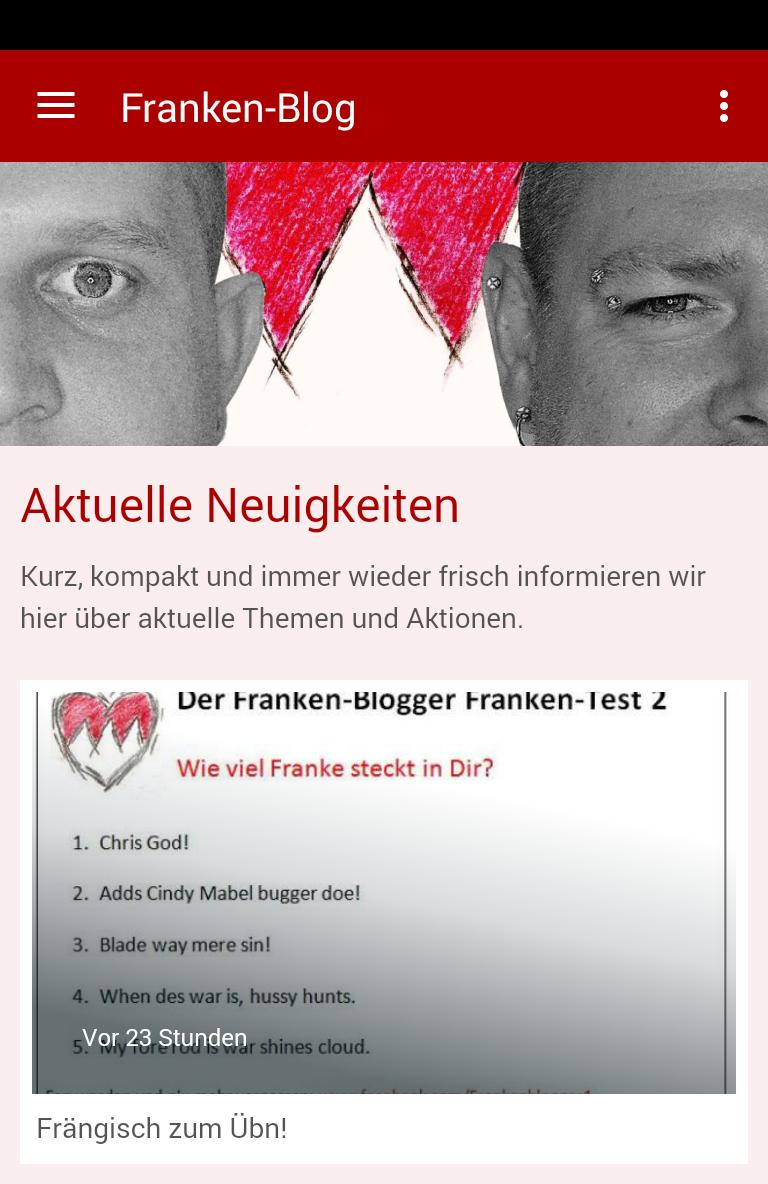 The Franken-Blogger adalah blog video Franconian pertama. Kami melaporkan secara teratur dari Franconia atas, tengah dan bawah dan menunjukkan Franconia dalam jenis kami. Kursus bahasa Franconian tidak boleh hilang, serta kata -kata sumpah Franconian dan Brigidde, kucing Franken. Semuanya dihiasi dengan foto -foto dari franc kami yang indah dan dengan kompetisi hebat.