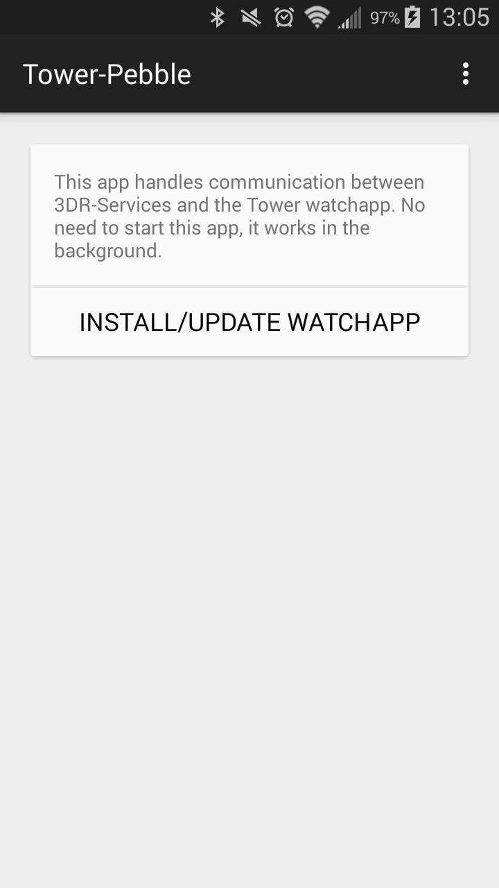 Tower-Pebble adalah WatchApp Stasiun Kontrol Darat (GCS) dan Aplikasi Android pendamping yang dibangun di atas layanan 3DR, untuk UAV yang menjalankan perangkat lunak Ardupilot.
