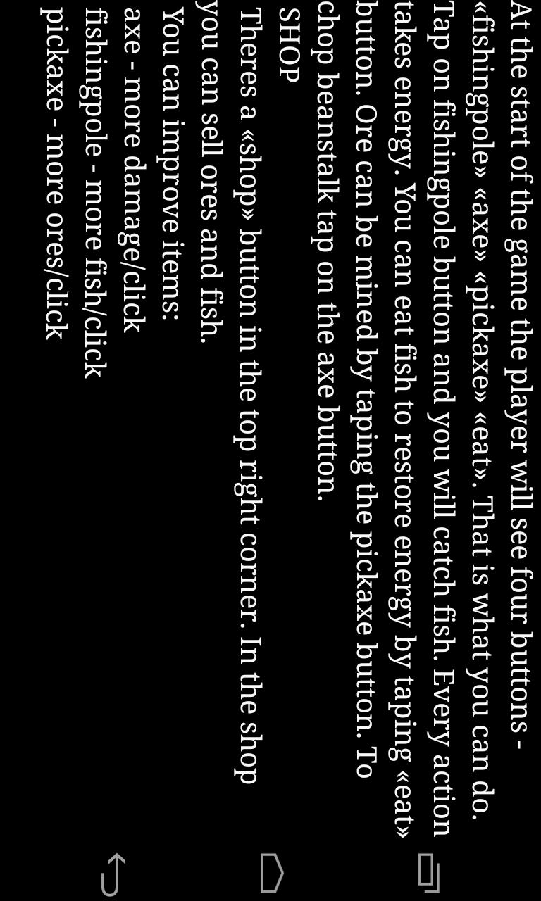 Ingat kisah Jack dan Beanstalk? Dalam permainan strategi ini, Anda perlu mengurangi kacang. Sulit membayangkan berapa banyak waktu yang dibutuhkan. Mungkin memakan waktu seumur hidup! Jadi, Anda harus tumbuh dan membangun sedikit infrastruktur. Selain tugas utama untuk memotong kacang, Anda akan dapat menambang bijih yang berguna di pegunungan dan memancing, dan akhirnya bahkan untuk mempekerjakan pekerja untuk ini.