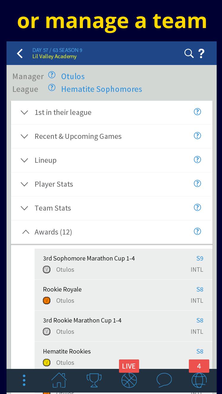 MMORPG basket ini didorong oleh komunitas. Ada batasan pemain yang dapat Anda miliki di satu tim. Musim ini terdiri dari sekitar 61 hari dengan permainan liga, turnamen dan kejuaraan dunia (di mana manajer dipilih oleh sesama rekan senegara mereka). Permainan diterapkan secara langsung, jadi pastikan Anda memilih liga sehingga Anda akan hadir pada waktu pertandingan.