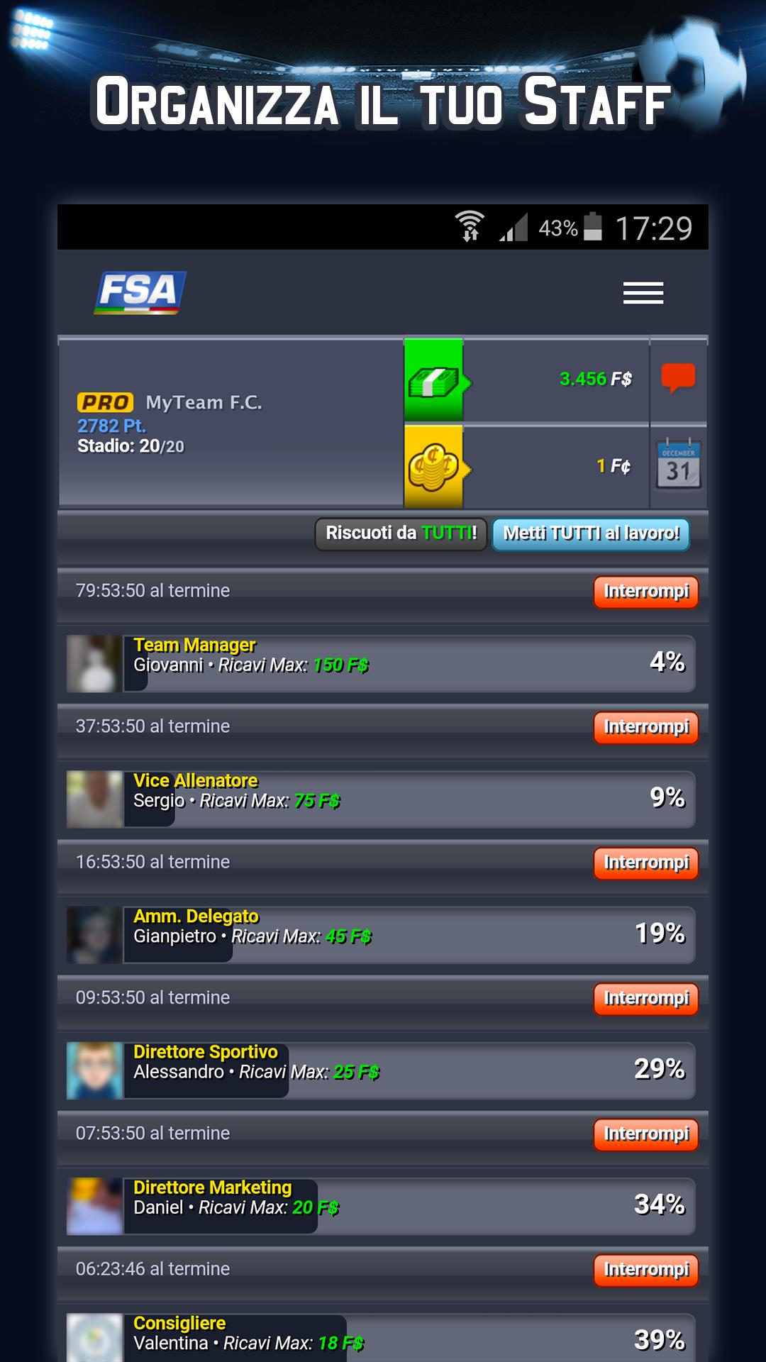 Apakah Anda tidak punya waktu untuk membuat sepak bola fantasi dengan kertas dan pena? Dengan FSA semuanya dikelola dan dihitung secara otomatis, gratis untuk Anda! Berikut adalah beberapa karakteristik yang ada: