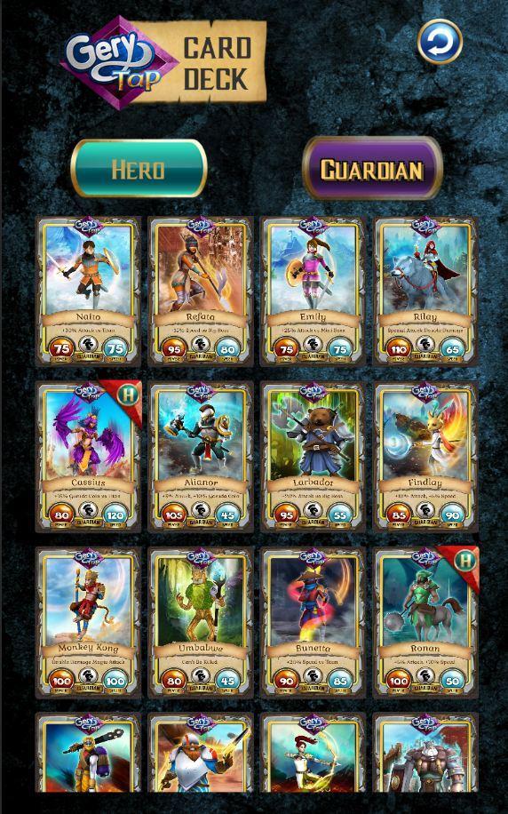 Bantu Hero-mu dengan mengkoleksi kartu Guardian, Weapon, Armor, dan Coin .