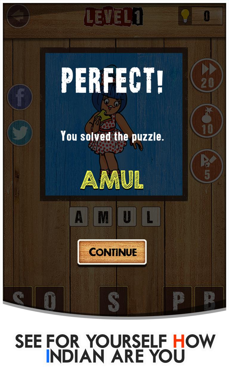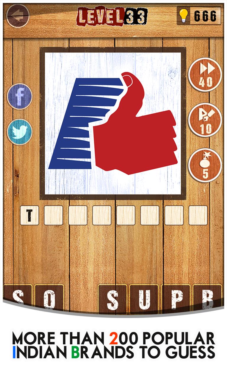 • Logos of popular Indian companies such as Mahindra and Micromax, from FMCG (Parle and Patanjali) to e-commerce (Flipkar and Snapdeal), automobile (Tata and Maruti) to TV channels (Doordarshan and Zee), tech startups (Shaadi and Zomato) to multinationals (Reliance and Birla), this game will truly challenge your desi general knowledge