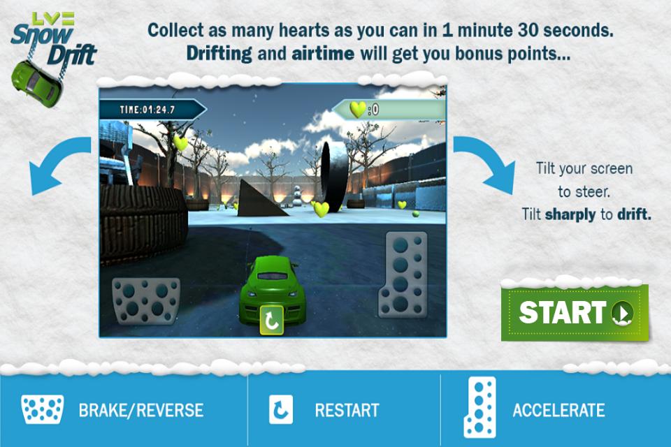Jadi inilah saatnya untuk menjadi kreatif, menyamping dan mendorong keterampilan mengemudi Anda ke batas dengan LV= SnowDrift . Untuk info lebih lanjut, kunjungi http://lv.com/lvdrift