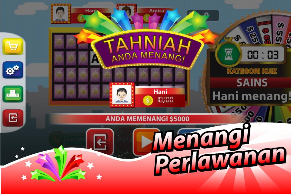 Anda bisa memutar roda untuk mendapatkan huruf yang tepat sehingga Anda bisa mendapatkan keuntungan kecil dalam koin virtual. Tetapi jika Anda beruntung Anda akan kehilangan giliran atau bangkrut tergantung di mana pointer berhenti. Uji pikiran Anda dengan gembira. Anda dapat memainkan game ini sendirian dan dengan orang lain. Dengan permainan ini, Anda dapat menghabiskan waktu bersama keluarga dan teman. Selain itu, permainan ini memberi kami kerja tim dan dapat meningkatkan pengetahuan kami.