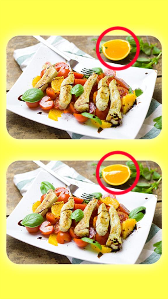 Temuan perbedaan adalah permainan yang tersembunyi perbedaan antara dua gambar makanan. Bandingkan gambar makanan menemukan lima perbedaan dan temukan. Tes perhatian, latihan konsentrasi dengan gim fot find the Difference - lezat.