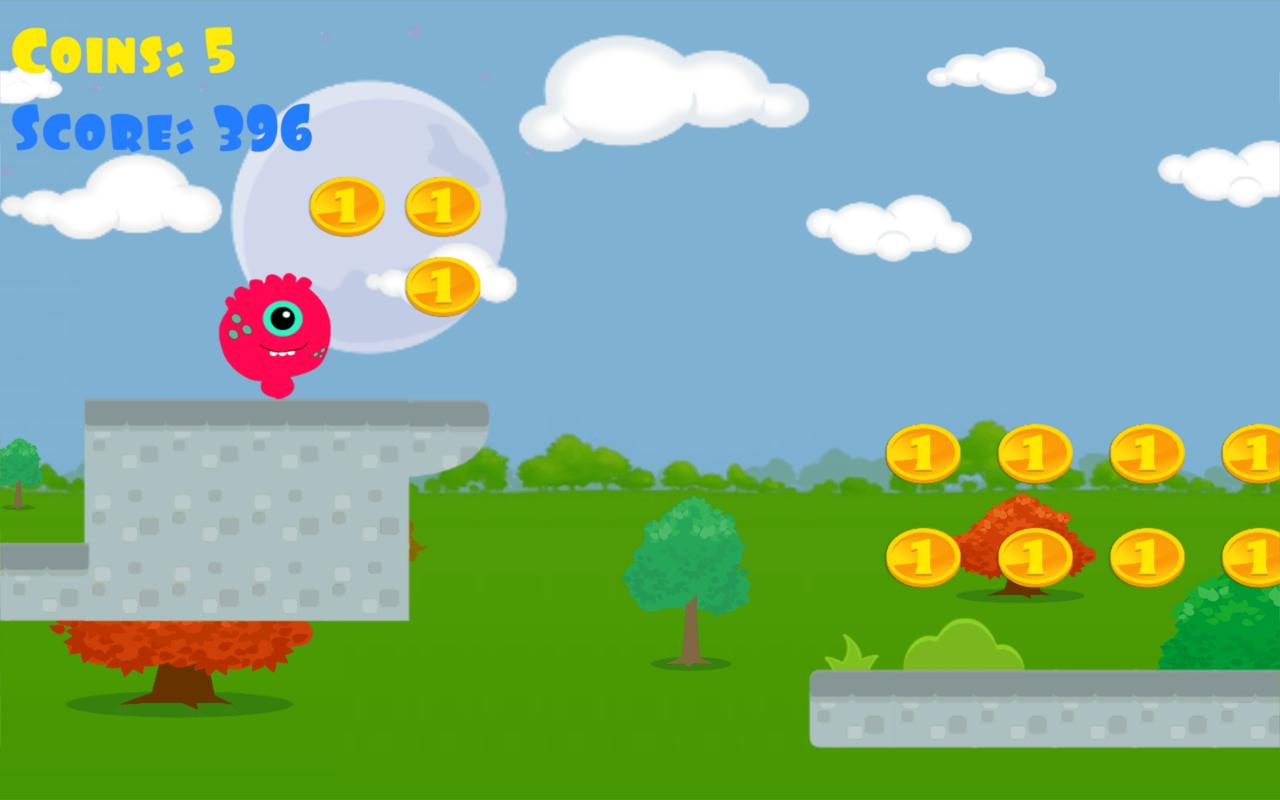 'M' monster kecil itu perlu menyelamatkan teman -teman kecilnya dan mengambil sejumlah besar koin dan melangkah sejauh mungkin untuk mendapatkan skor tinggi.
