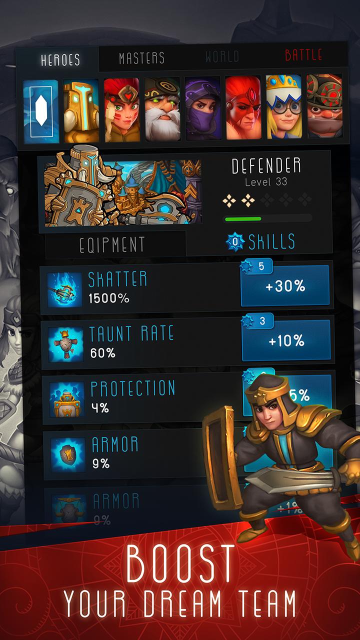 Tingkatkan keterampilan dasar Anda dan tingkatkan pahlawan Anda. Tinjau taktik sebelum berkelahi dengan bos dan meningkatkan keterampilan yang diperlukan. Gelombang pertempuran tergantung padanya!