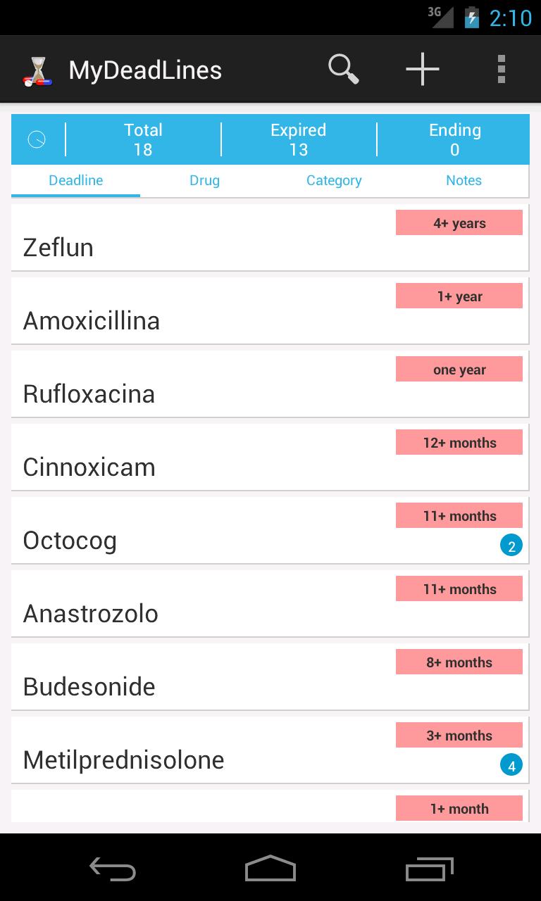 薬物を購入するたびにmyDeadlinesを使用すると、有効期限が切れた場合、または最初に使用した後にアプリケーションにログを記録します。通知は締め切りを警告するので、期限切れの薬を捨てて、おそらく再び買うことができます。