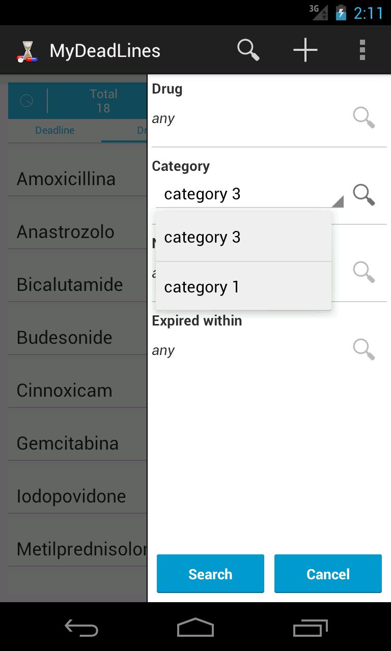 - 薬物カテゴリ、メモ、および満了で検索します