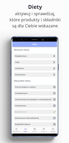 「あなたが何を食べているか知っている」のおかげで、特定の成分や製品についてさらに学ぶだけでなく、食事や栄養プロファイルへのコンプライアンスを確認します。あなたは野菜ですか?高血圧に苦しんでいますか?乳糖を避ける必要がありますか、それともグルテンアレルギー - セリアック病ですか?それとも妊娠していますか?特定の製品の組成があなたの健康にどのように影響するか、そしてそれがあなたの食事と互換性があるかどうかを確認してください。アレルギー、食物不耐症、特定の成分が豊富な食事 - それを制御し続け、健康的な買い物をします。また、自分のお気に入りまたは不要な材料を定義し、実績のある製品で簡単に見つけることもできます。健康的な食べ物もおいしいはずですので、ほうれん草が嫌いな場合、またはイチゴにアレルギーがある場合、アプリは彼らのコンテンツを警告します。