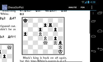 このアプリは、本や雑誌でチェスの数字(図)を認識しています。 Chessocr https://play.google.com/store/apps/details?id=com.kgroth.chessocrの無料版ですが、背面カメラを使用する代わりに、入力はギャラリーのキャプチャ画像です。このキャプチャされた画像にはチェスのフィギュアが含まれている必要があり、通常、表示されたチェス図のスクリーンキャプチャを実行することで取得されます(PDFファイルまたはWebページから)。入力画像は、任意のカメラを使用してオフラインでキャプチャすることもでき、その後、Androidデバイスに転送されます。