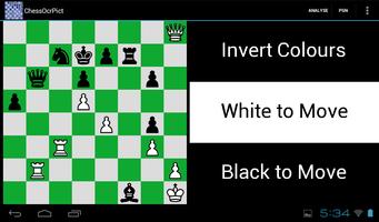 最良の結果を得るために、チェスの数字は入力画像の少なくとも半分を占有する必要があります。認識が失敗した場合、アプリは結果なしに直接戻るだけです。要約すると、このアプリはChessocrと同じ機能を持っていますが、入力はオフラインで取得された静的画像であり、背面カメラから得られたライブ画像ではありません。 ChessocrpictはWebページではうまく機能しませんが、書籍や雑誌のPDFファイルで動作します。