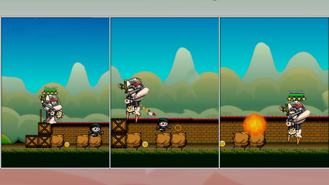 このタイプのプラットフォームシューティングゲームにはすでに精通していると思います。ただし、念のため、戦争ゲームの基本を見てみましょう。兵士を展開し、彼をタップしてアクティブにします。ヒットマンに近づき、盗賊を撃ち落とそうとすると、彼が反撃します。戦略スキルを適用して、遠くから敵を殺します。燃料樽を大爆発者のために撃ち、fall落したヒーローのホールに参加しないように距離を保ちます。
