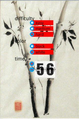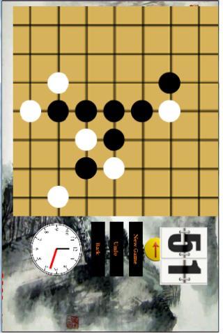 ゴモク、または五目並べ、または五子棋、または오목としても知られる5つの石は、黒と白の石で演奏される古代アジアのボードゲームです(ゲーム)。黒が最初に演奏され、白が続きます。各プレイヤーは、ボードの交差点で石を演奏します。このゲームの目的は、垂直、水平、または斜めに5つの石を連続して接続することです。この目的を達成した人は誰でもゲームに勝ちます。プレイヤーは、いつでも1分未満で移動を終了するか、タイミングを合わせることなく移動を終了することを選択できます。プレイヤーが選択できる3つの困難があります。プレイヤーはまた、黒または白をプレイすることを選択します。このアプリケーションは、非常に大きなAndroid画面用に記述されており、小さな画面にも最適化されています。