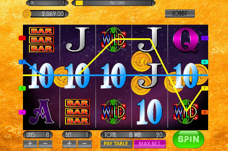 大きな賭けをし、リスクを冒して、信じられないほどのジャックポットを獲得して、異なる画像ラインを作るようにしてください。このAndroidゲームで海賊の宝物を追求してください。あなたの運をテストし、成功した冒険家になります。ボタンをタップして、スロットマシンの5リールをスピンします。文字、奇妙なキャラクター、海賊ピストル、コンパス、その他のテーマのシンボルは、リールで画像化され、良い組み合わせがある限りフラッシュします。あなたの賞金を取り、それを増やしてください!