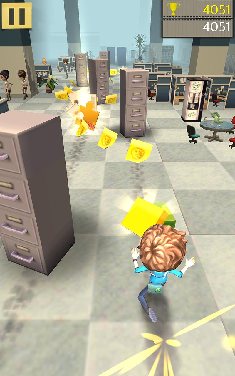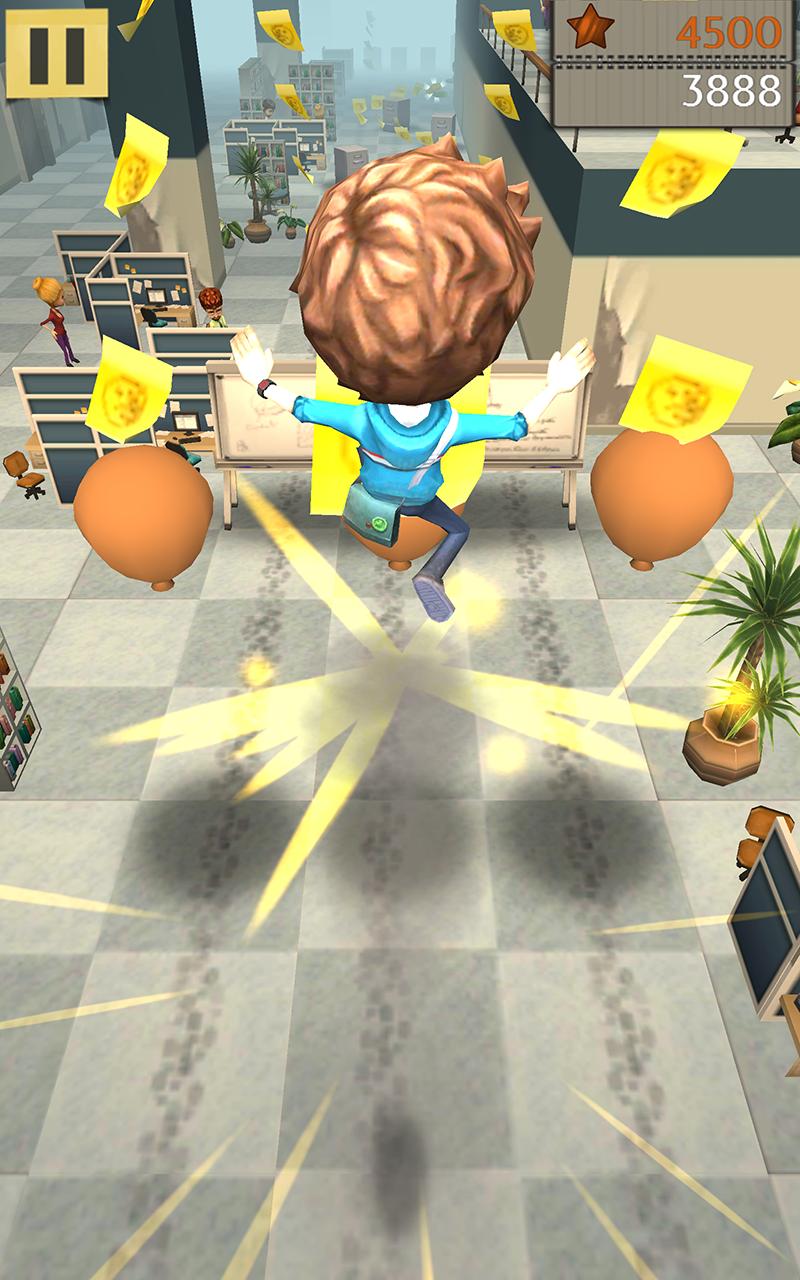 指をスワイプして、オープンスペースを走らせたり、ジャンプしたり、滑ったりします。乱雑な職場環境を最大限に活用してください:跳ね返り、パーティー風船で空中に連れて行きます。しかし、注意してください!あなたのスタントマンのスキルは挑戦されます。オフィスに向かう途中で散らばっているビン、食器棚、その他の家具を避けてください。