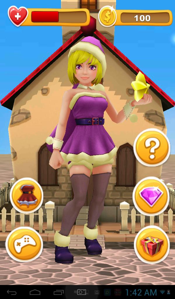 あなたは彼女の衣装を変更し、彼女の幸福レベルを上げるために彼女の宝石を与えることができ、彼女はあなたに贈り物を返します。あなたはコインを獲得するためにミニゲームをすることができます。