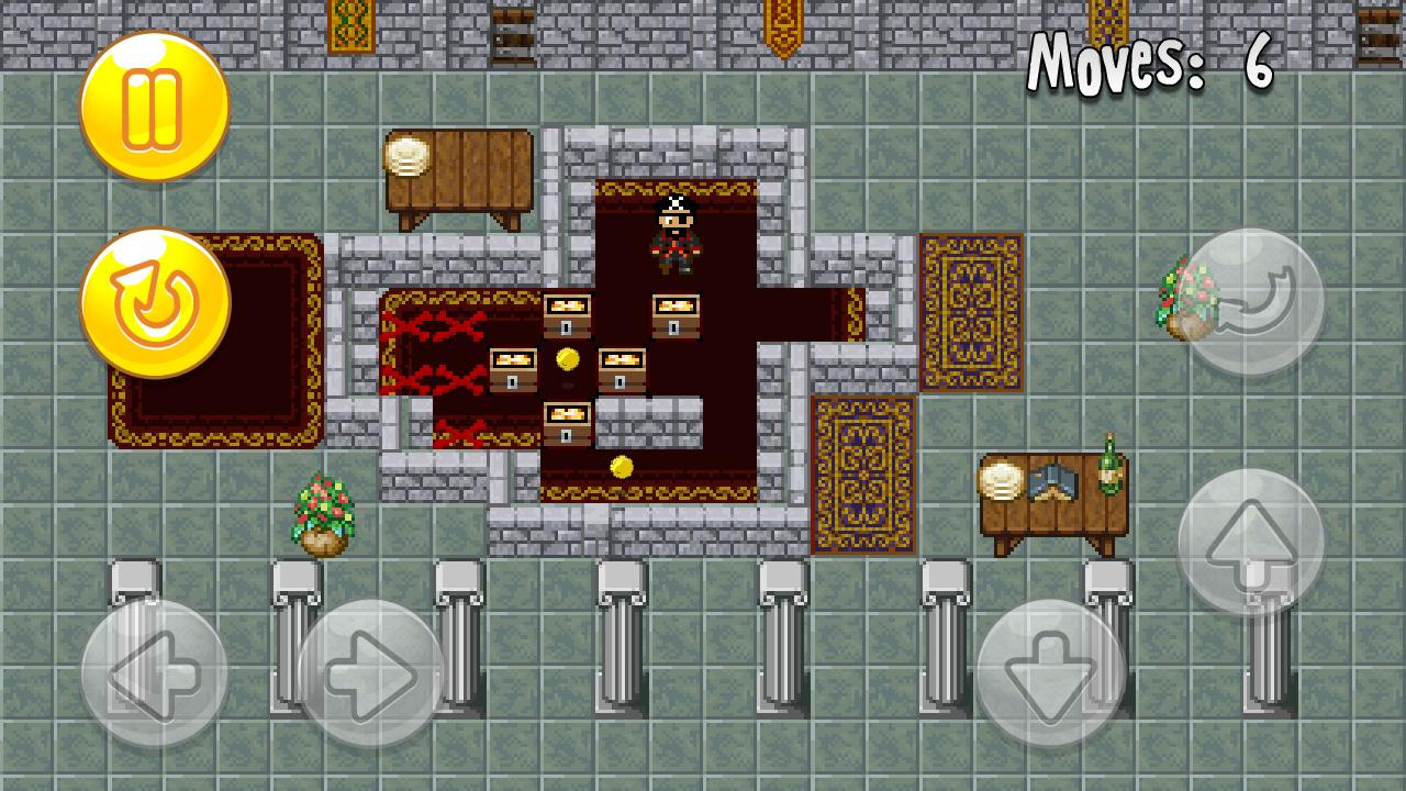 Sokoban Of Pirate - unningな海賊が盗まれた宝物を隠すのを手伝ってください。迷路で胸を金でいっぱいに動かして、それらを隠します。ロジックを使用して、このAndroidゲームの興味深いレベルを完成させます。一度に1つの胸を移動できることを忘れないでください。海賊は彼の後ろに胸を引っ張ることもできません、彼はそれを前進させることしかできません。すべての金貨を集めて最大のポイントを獲得することを忘れないでください。胸を最も短いルートに沿って、赤十字でマークされた場所まで移動します。
