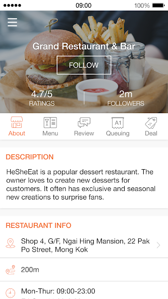 - 대기열 : 사전 대기열. 미리 큐 티켓을 사전에 가져 가서 식당 메뉴를보고 기다리는 동안 장바구니에 선택을 추가 한 다음 테이블이 거의 준비되면 알림을받습니다.