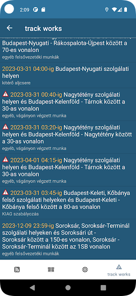 헝가리의 온라인 철도 교통 정보. 모든 스테이션의 라이브 도착 및 출발 보드, 세부 열차 실행 정보 및 진행중인 트랙 유지 보수 작업에 대한 알림을 표시합니다.