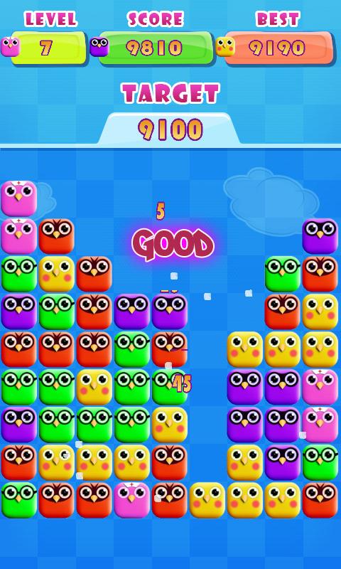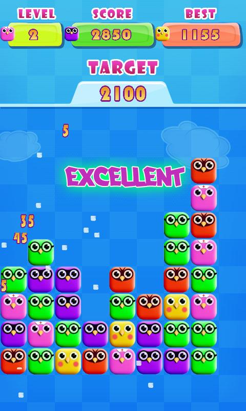 1. 두 개 이상의 인접한 새를 탭하여 그들을 파괴하십시오!