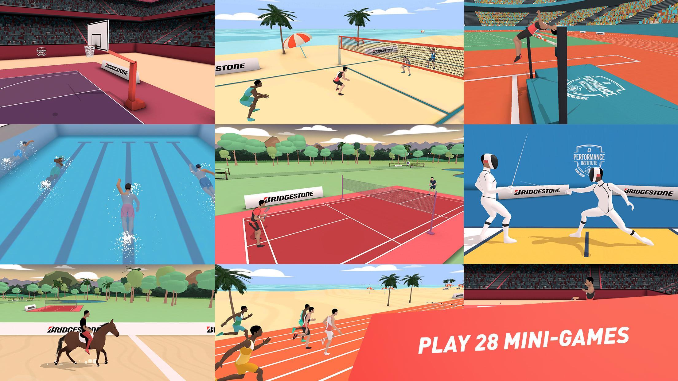 The best aren't born. 그들은 지어졌습니다. And this summer, you can put your skills to the test in the Bridgestone Performance Trials . Join in a mad dash through dozens of athletic events like Tennis, Swimming, 100m Sprint, Soccer, Archery, and more in pursuit of the gold. Set new high scores, challenge your friends, unlock avatars, and build a collection of trophies to show off your accomplishments. Put your performance to the test to answer the question, “Am I built to compete on the world stage?”