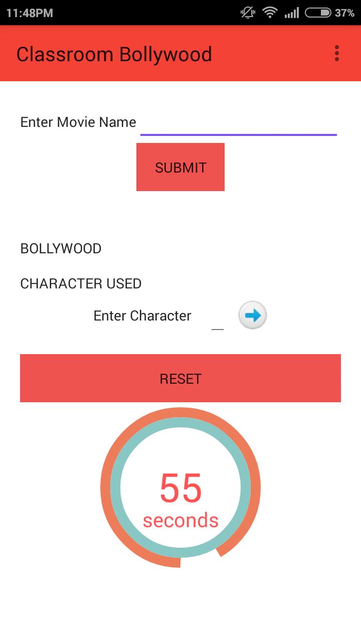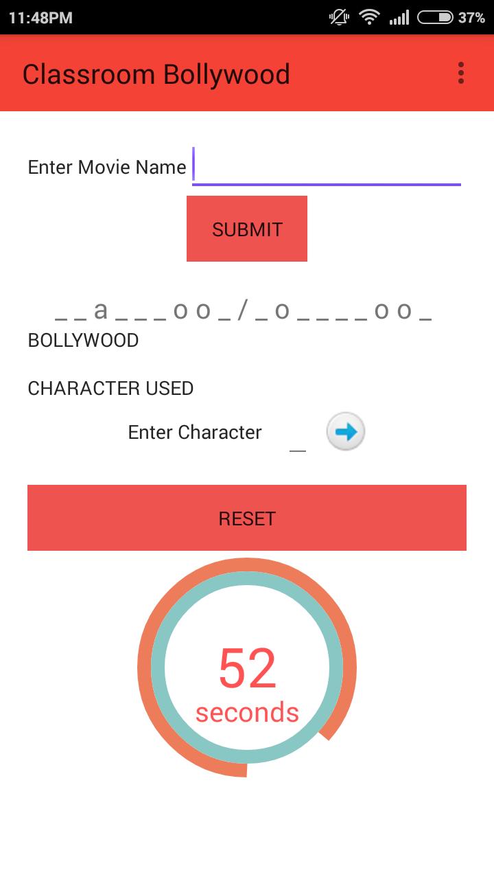 플레이어는 볼리우드 단어의 모든 알파벳이 잘릴 때까지 10 번의 기회 만 있습니다.