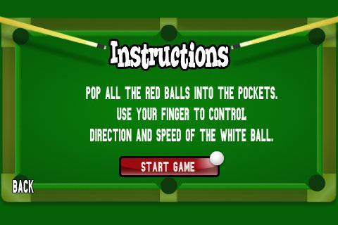 모든 빨간 공을 주머니에 넣으십시오. 손가락을 사용하여 흰색 공의 방향과 속도를 제어하십시오.