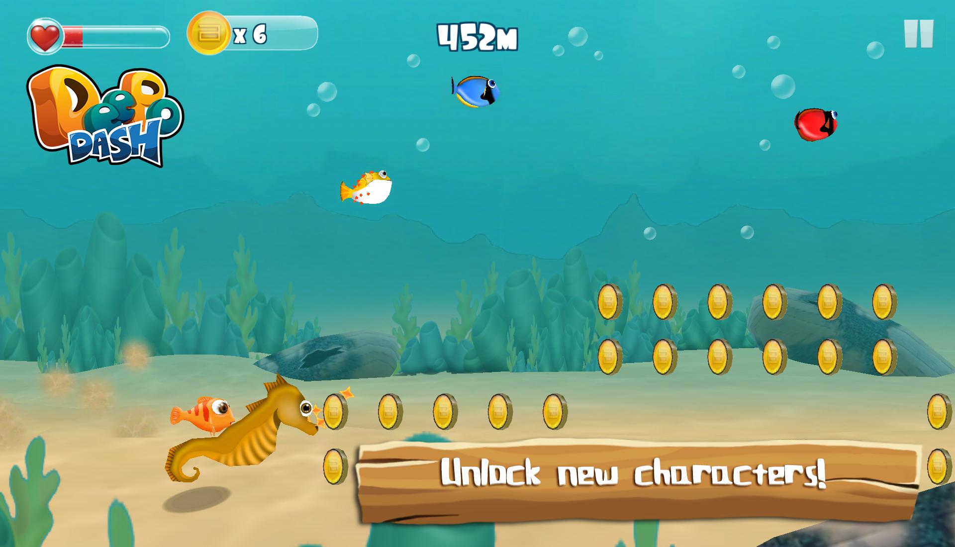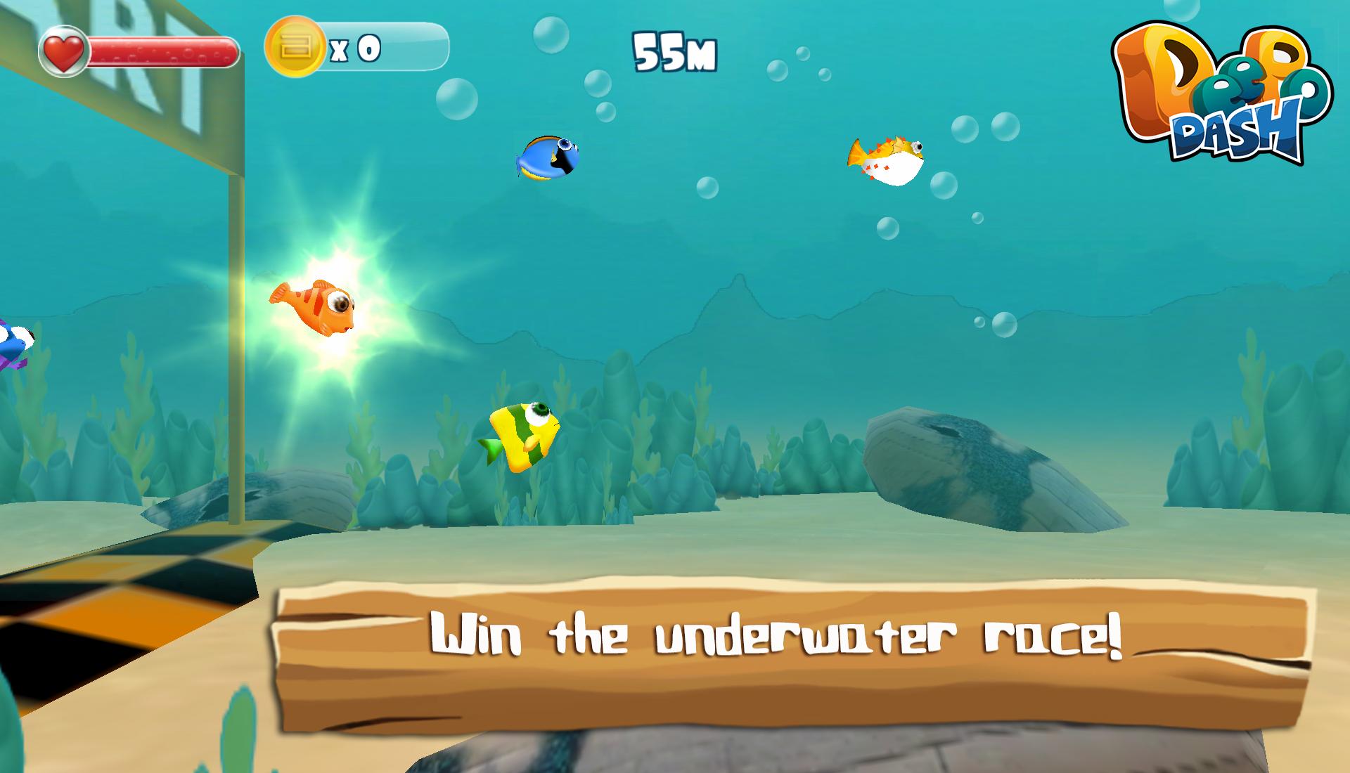 Deepo Dash 는 끝없는 수영 선수로, 화면을 탭하여 품목을 모으고 장애물을 피함으로써 Deepo The Fish를 제어합니다. 젊고 노인에게는 재미있는 게임이며, 당신이 더 많은 것을 얻을수록 더 어려워집니다.