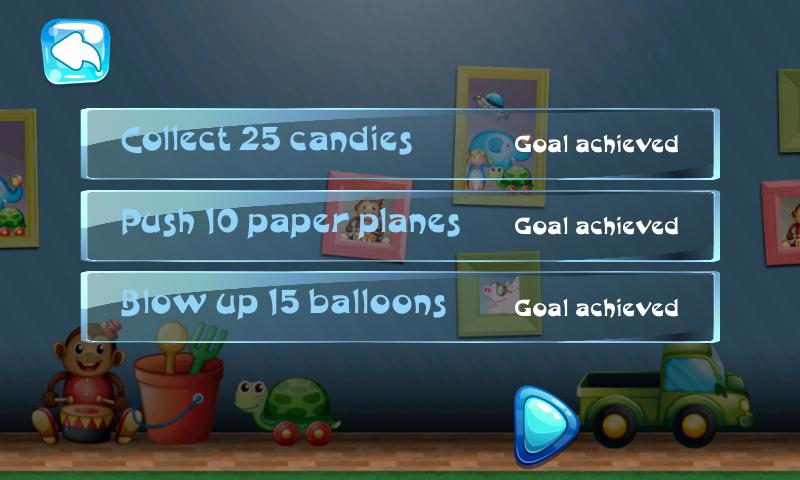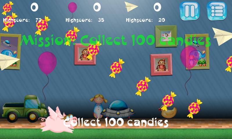가능한 한 많은 사탕을 모아야합니다. Baloons를 피하거나 종이 비행기를 밀어 Baloons를 날려 버립니다.