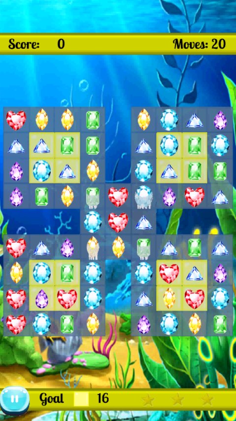 당신의 목표는 단순히 보석을 스와이프하여 Great White Shark MATCH 3 대형을 만들어 보석을 공격하고 돌진하는 것입니다.