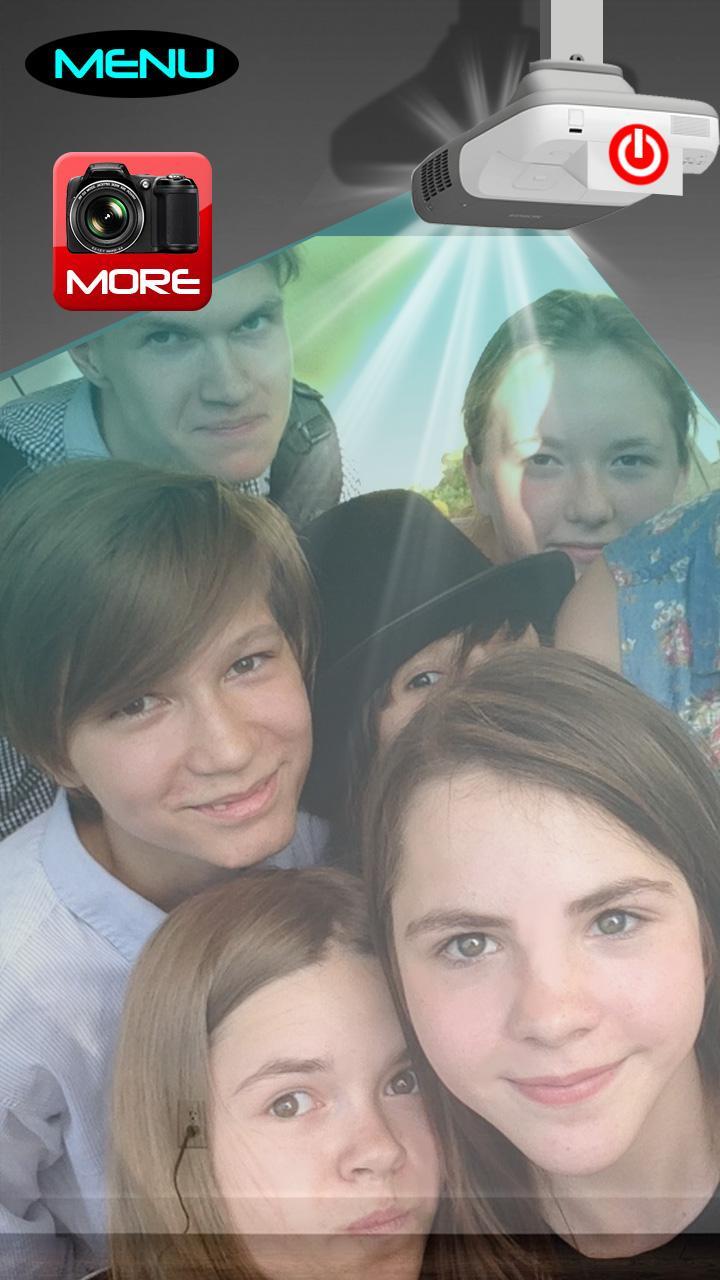 자신의 사진을 찍어 프로젝터로 보내십시오! 영화 감독으로 자신을 시험해보십시오! 그의 영화를위한 장면을 촬영하십시오! 새해 또는 크리스마스 셀카를 만드십시오!