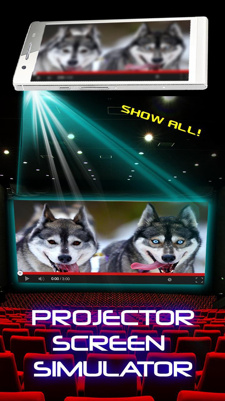 Projector Screen Simulator - 극장의 프로젝터로 전화로 연주 할 수있는 게임 시뮬레이터 농담! 사진이나 셀카를 자신과 친구들을 찍으십시오! 프로젝터를 시작하면 영화에서 화면에 자신을 데려 오기 위해 여기에 있습니다!