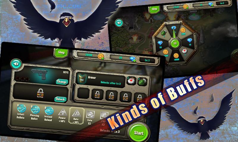 - 버프의 종류 : 좀비를 스릴을 만들도록 장비하십시오!