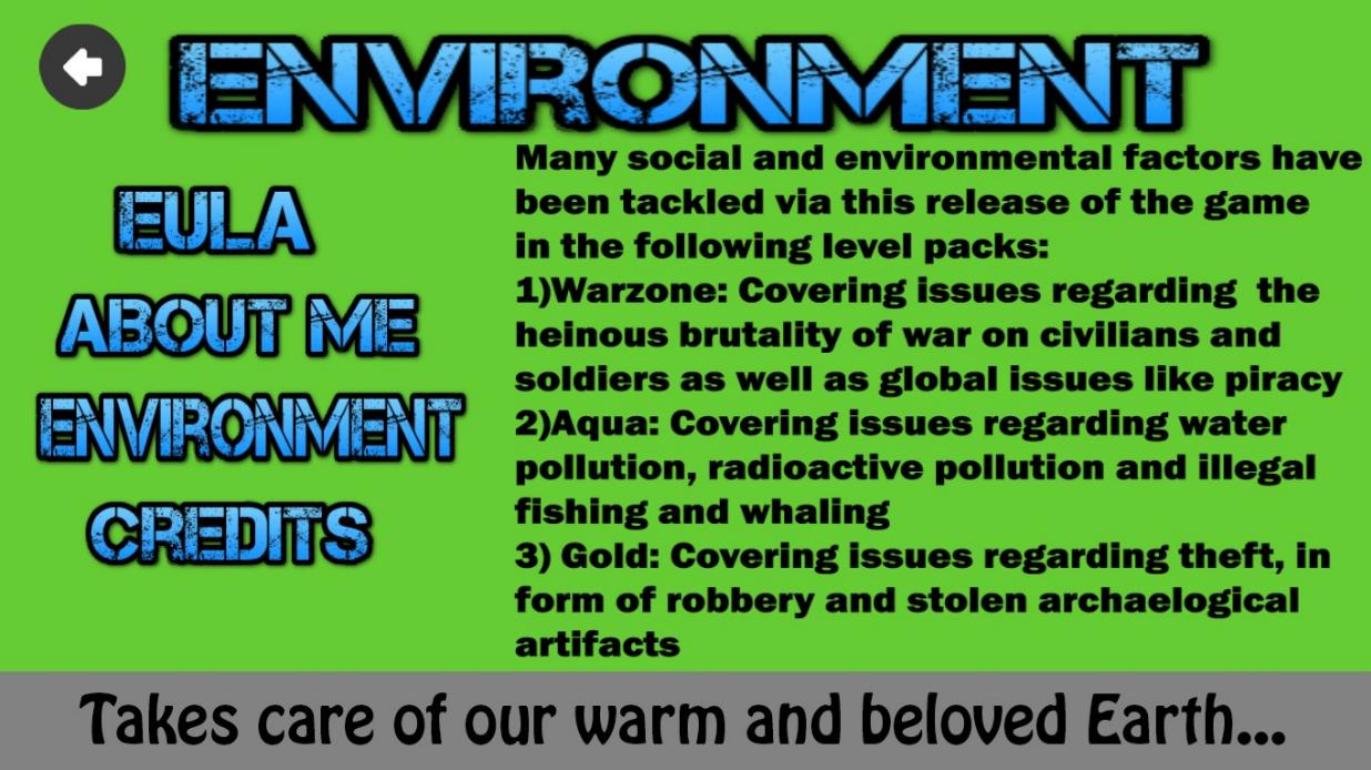 이 게임은 밀렵, 전쟁 범죄 및 도난과 같은 많은 민감한 사회 및 환경 문제를 다룹니다. 게임을 공유함으로써 세상을 괴롭히는 이러한 유해한 문제에 대한 인식을 전하십시오.