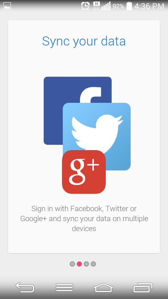 Fridge é um aplicativo simples que acompanha os itens da geladeira e possui um recurso conveniente para adicionar e compartilhar notas, por exemplo, compartilhando listas de compras com seus amigos ou entes queridos. O aplicativo agora sincroniza seu conteúdo com um banco de dados em nuvem de onde eles são distribuídos aos dispositivos de seus usuários, se o usuário decidir fazer login com sua conta do Facebook/Twitter ou Google+.