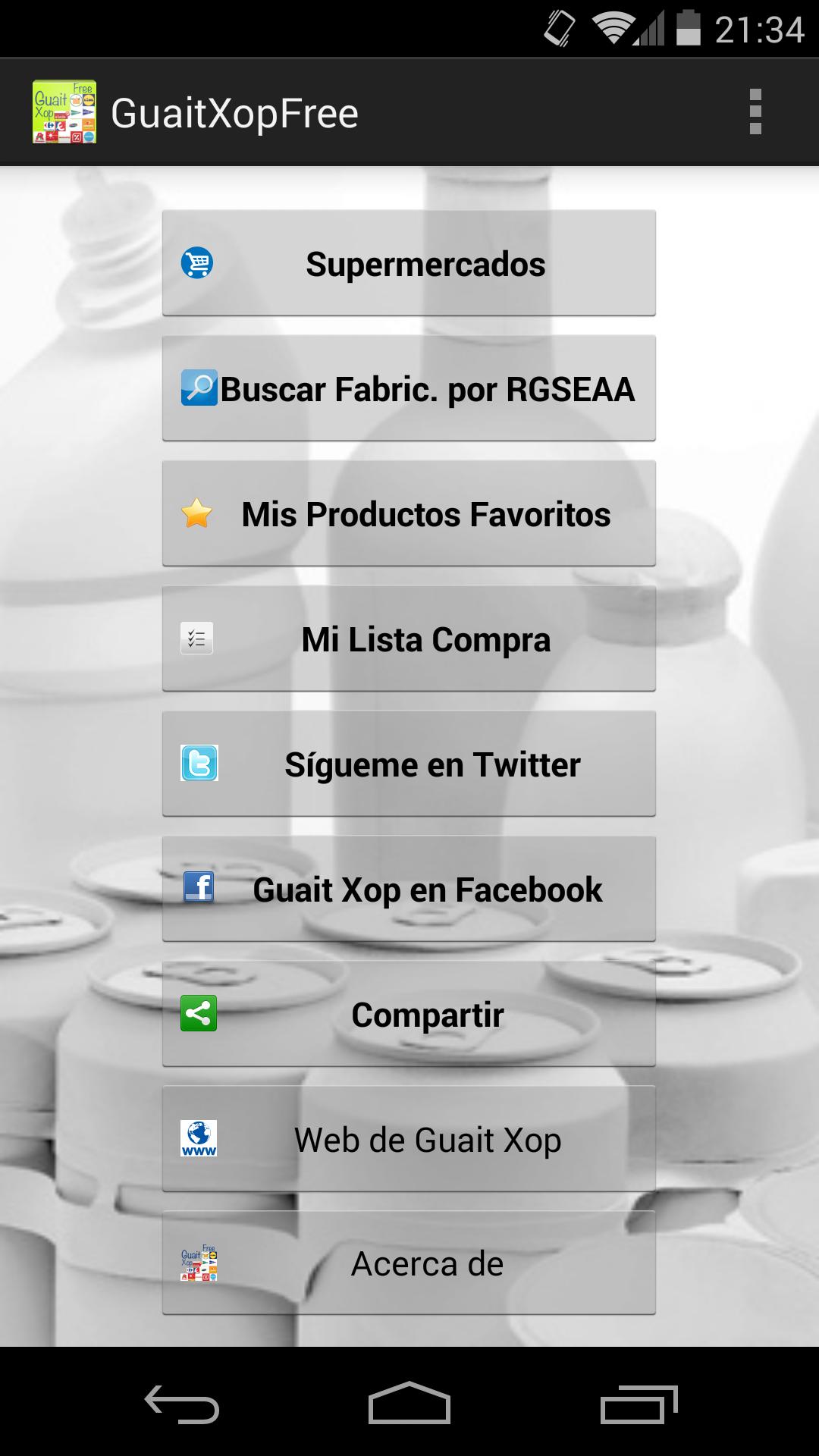 Além disso, o GuaitXOPFree é o único aplicativo espanhol que realmente permite que as empresas de manufatura procuram seu RGSEAA (ex -RGSA), independentemente de o produto interessado ser encontrado ou não no banco de dados de produtos da marca branca. Nota: Na versão 3.1.0 incluída.