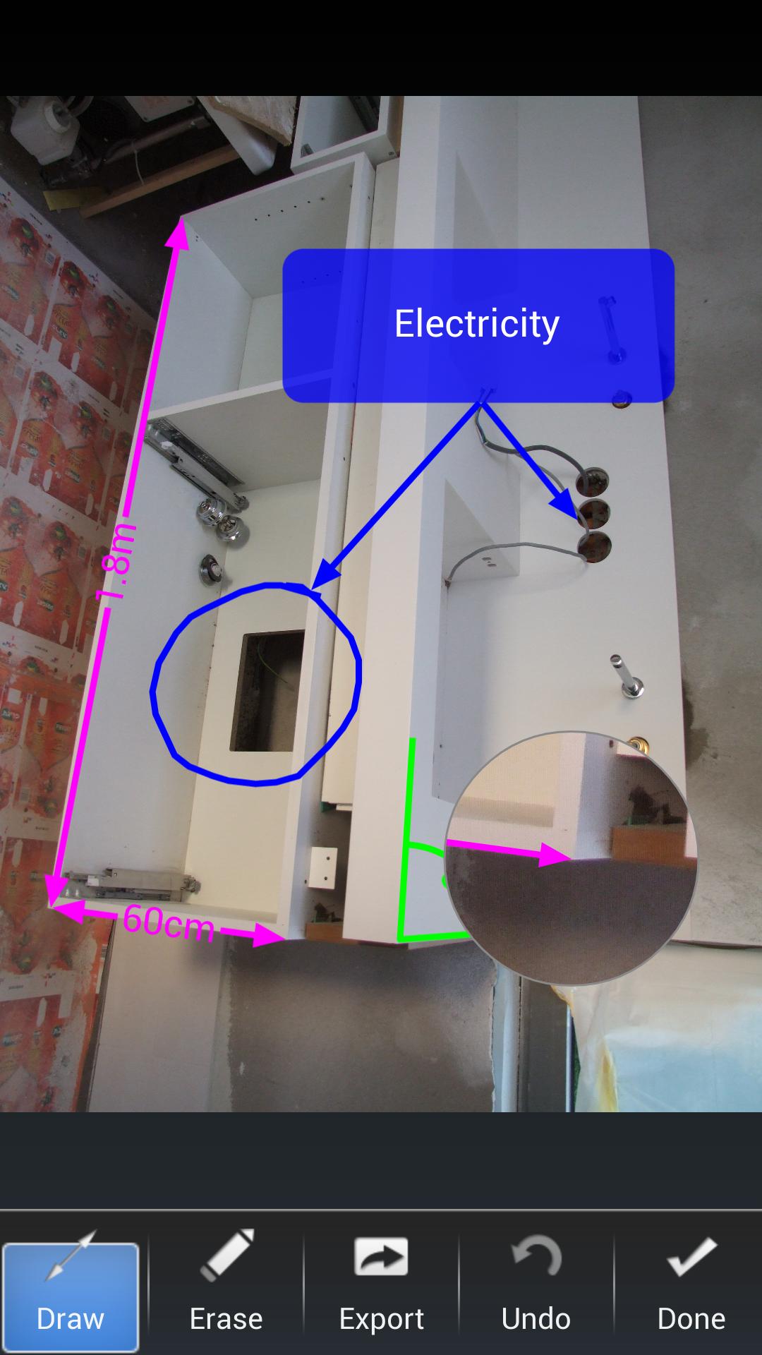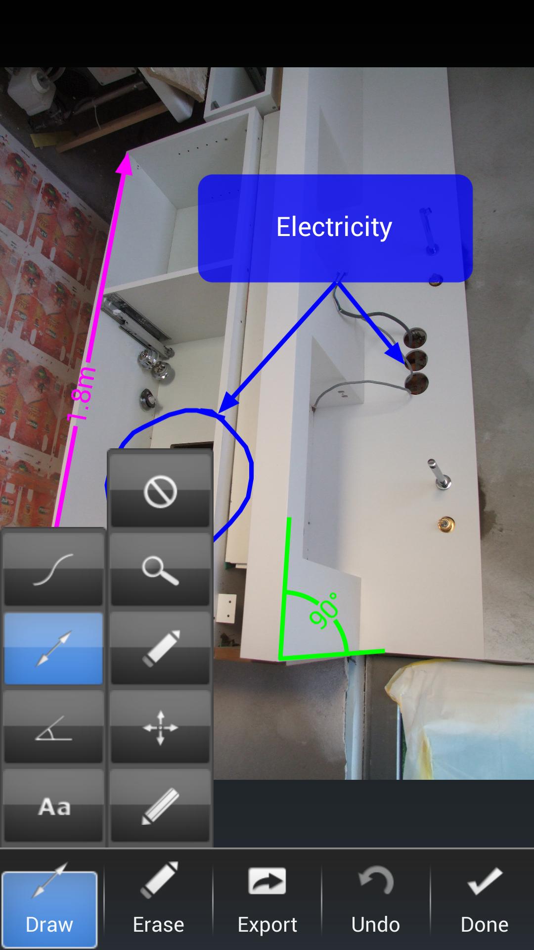 Desenhe medidas e dimensões nas fotos e compartilhe o resultado com outras pessoas.