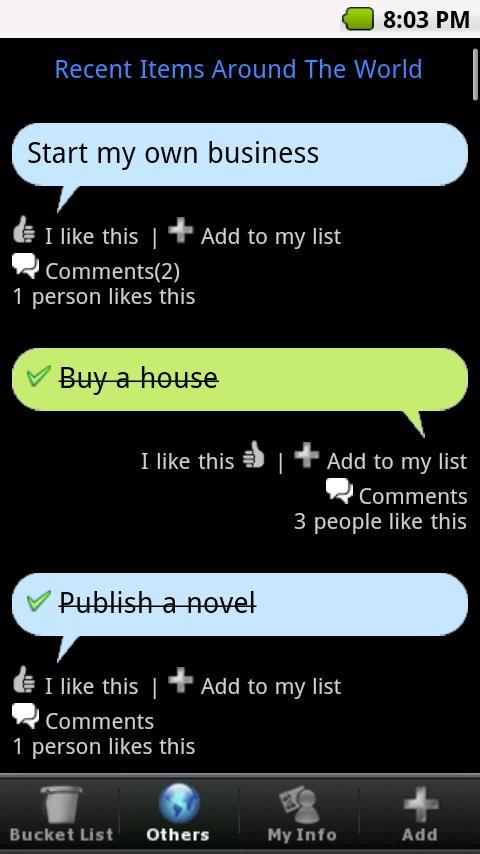 Acompanhe a lista de tarefas/baldes da sua vida. Veja o que os outros colocam em suas listas.