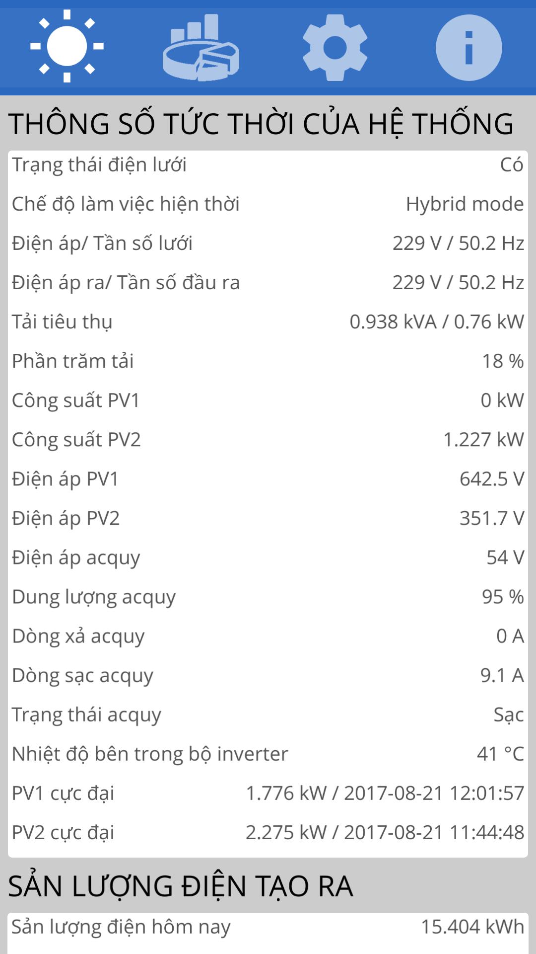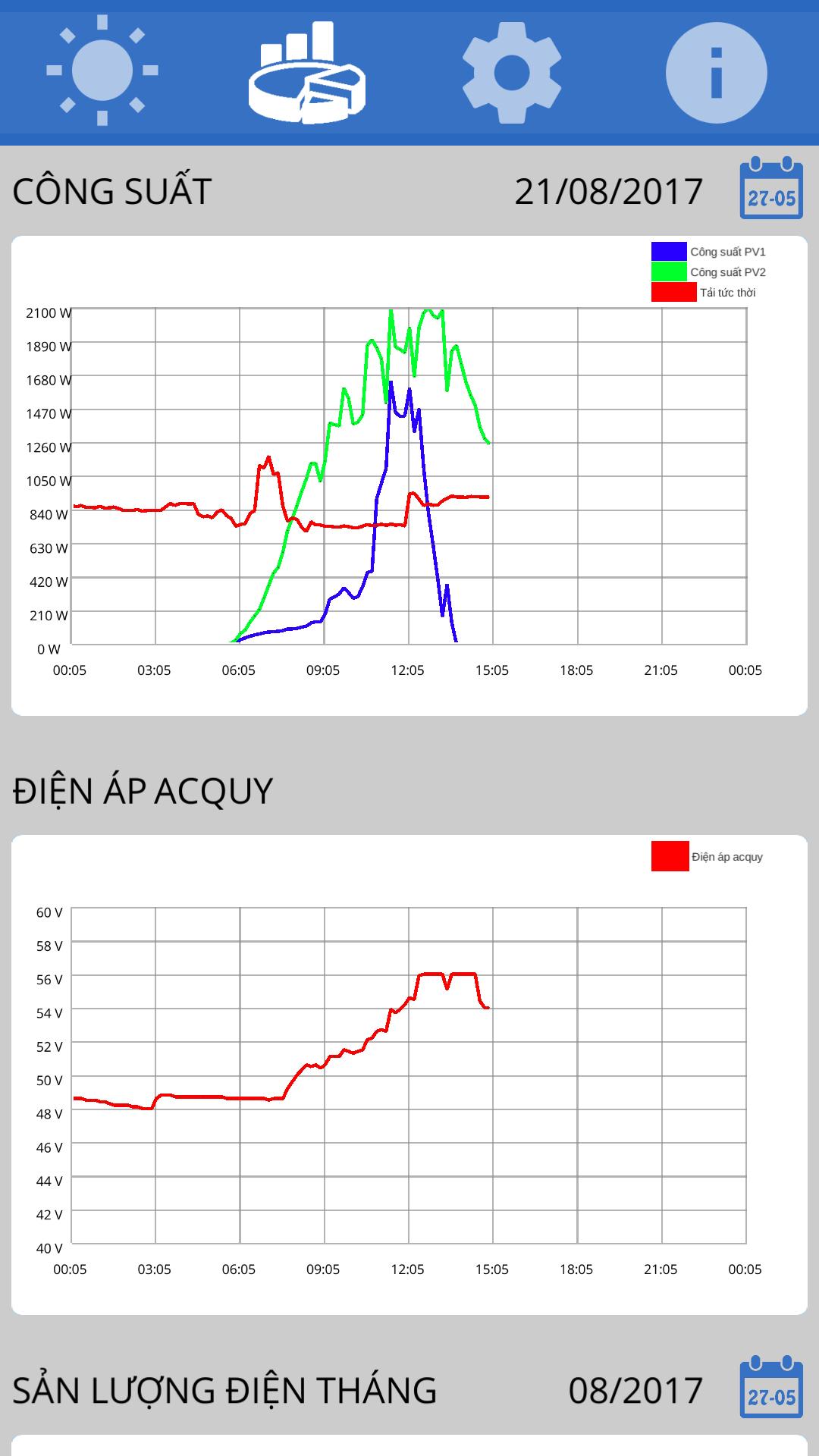 - Exibir gráficos em PV, carga, tensão da bateria e saída mensal de eletricidade