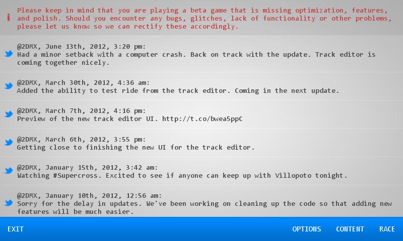 2D motocross racing for your android device. Race against the clock on a variety of different tracks. Think you can make a fun track? Have a go with the track editor and build anything you can imagine.