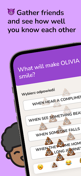 Adicione os nomes de todos os seus amigos e observe como segredos estão expostos! Assuma um ousado ousado e conquista desafios divertidos ao longo do caminho. O jogo eleva a experiência de entretenimento, superando o fator divertido de clássicos como nunca, Picolo, maçãs, expostos, Boom, laboratório de festa ou Jeopardy. Buddies expõem os lados mais divertidos e inesperados de seus amigos ou casal.