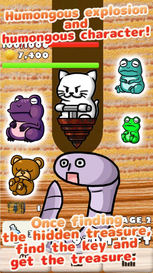 Depois de esbarrar no inimigo, o gato atacará com broca! Diminui o HP do inimigo. O gato vai coletar os ouro por si só! Toque e colete ouro direito e esquerdo! Existem tesouros escondidos também!?