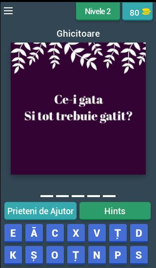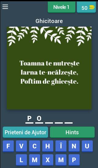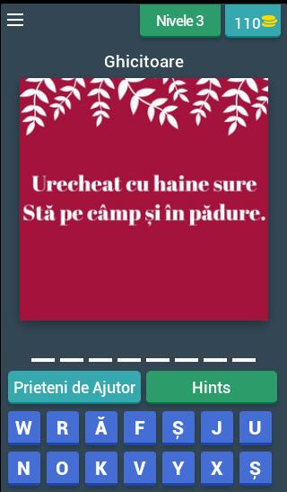 Ghici Ghicitoare é um jogo do tipo trivial, onde você deve responder a um enigma. Esses enigmas são alguns folclore, engraçados, que tentam testar sua lógica e pensamento gerais.