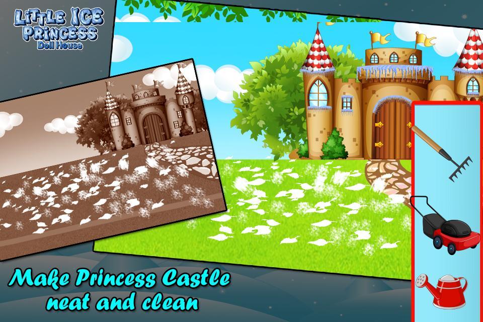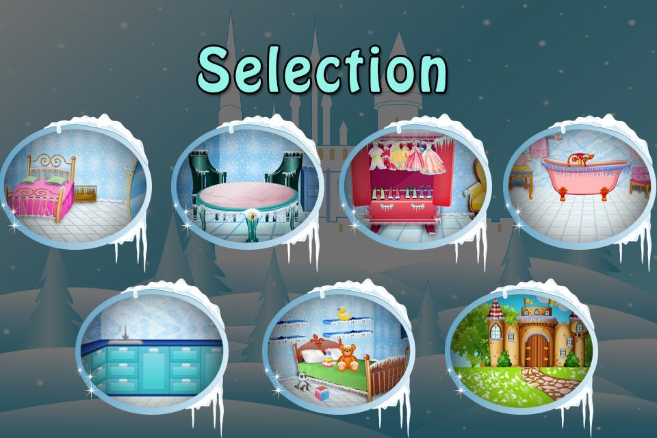 Um tema totalmente novo neste maravilhoso jogo de decoração de castelo de gelo, você tem princesas que estão em uma reforma de uma casa de boneca, que é toda congelada de gelo.