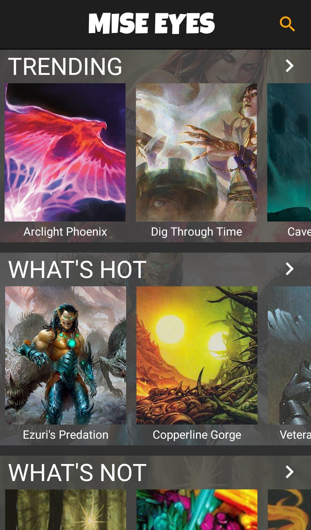 Mise Eyes é seu companheiro para a magia: a reunião. Procurar cartas nunca pareceu melhor. Mise Eyes é simplesmente a maneira mais fácil de encontrar as informações do cartão. Precisa encontrar o preço de um cartão? Experimente Mise Eyes . Adicionamos novos recursos com bastante frequência. E nosso banco de dados de cartões é sempre o mais fresco do mundo. Faça o download do seu companheiro e comece a gostar agora.