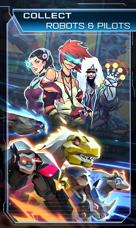 - Colete e combine pilotos com robôs - acumule um esquadrão de robôs distintos! Cada robô possui características e habilidades especiais, combine seu bot com um piloto designado para formar a equipe perfeita e elevar -se à supremacia final