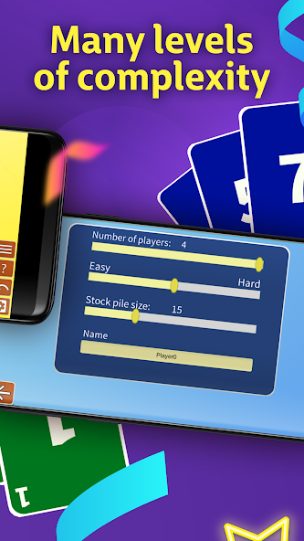O jogo é semelhante a Spite & Malice ou Cat & Mouse. O objetivo é se livrar de todo o seu baralho colocando cartas na mesa. Você também pode selecionar o nível e a duração da dificuldade, tornando -o perfeito para uma pequena pausa, um trajeto ou para passar o tempo durante uma longa espera.